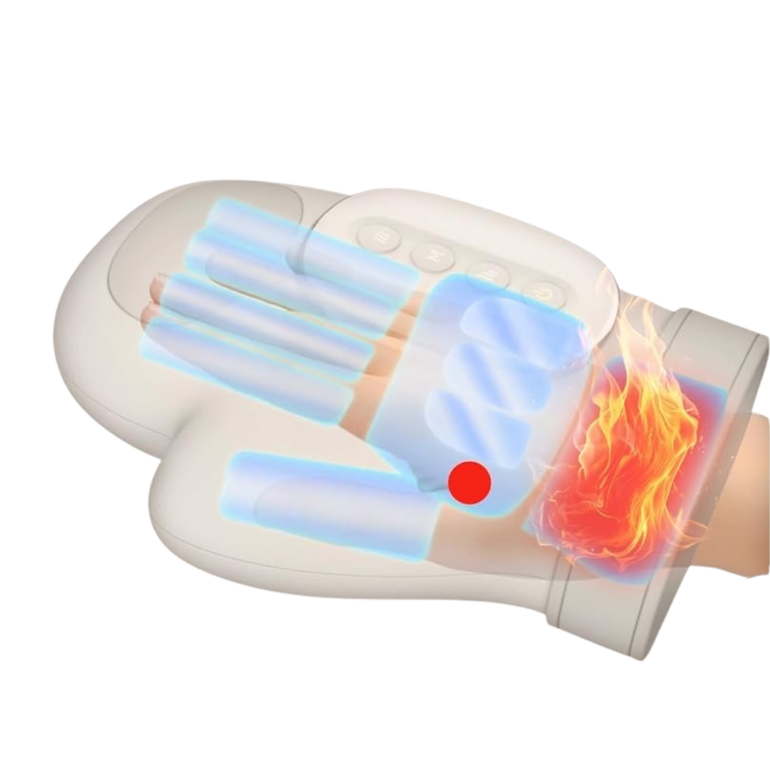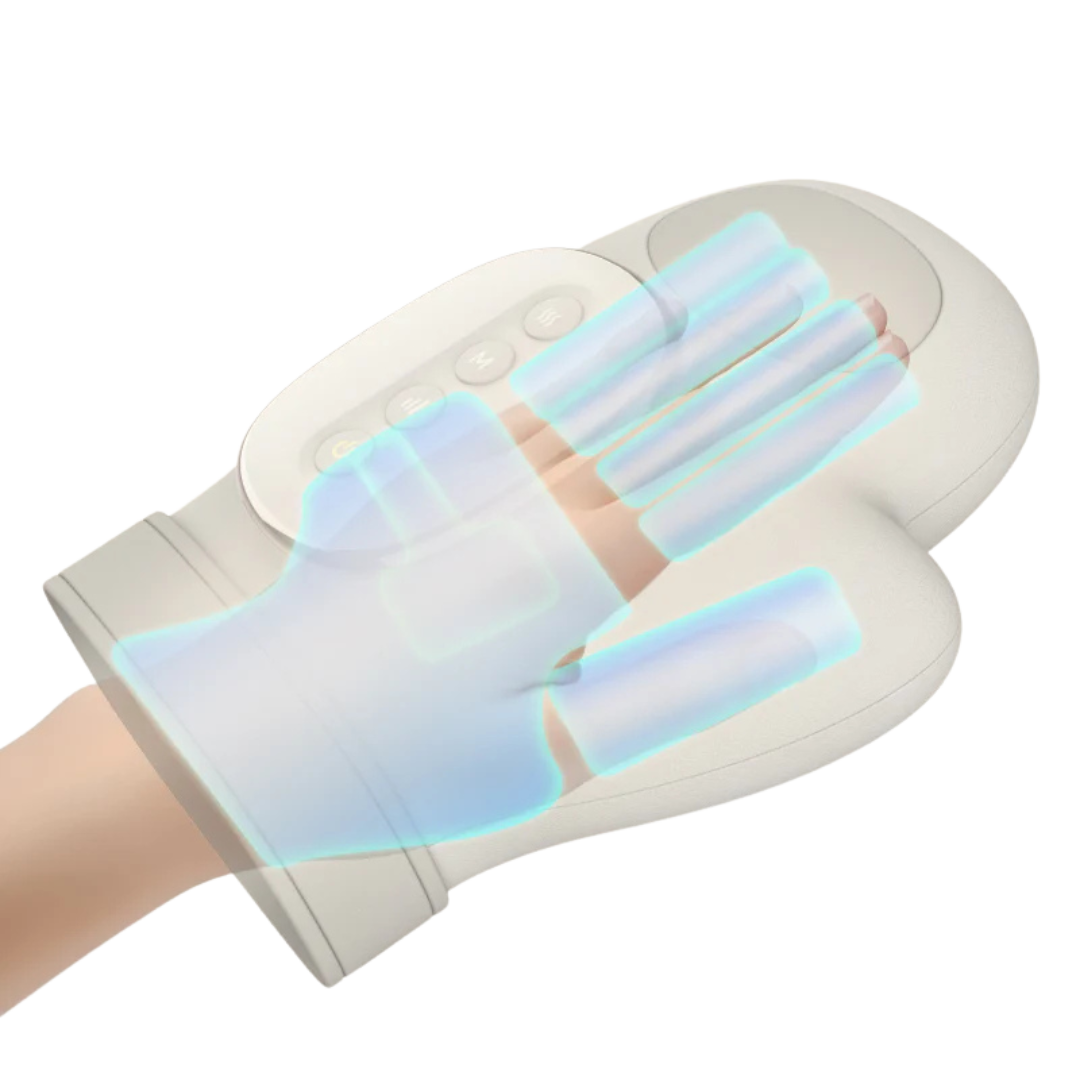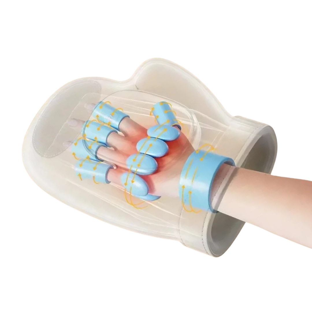 Dynamic air chambers apply gentle, rhythmic pressure across the palm, fingers, and wrist, stimulating blood flow, relieving tension, and improving circulation.